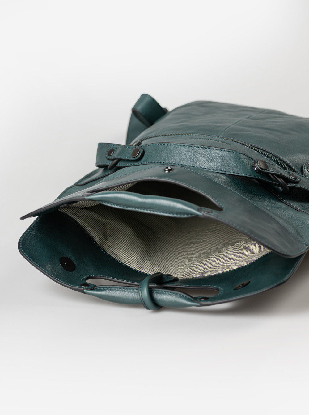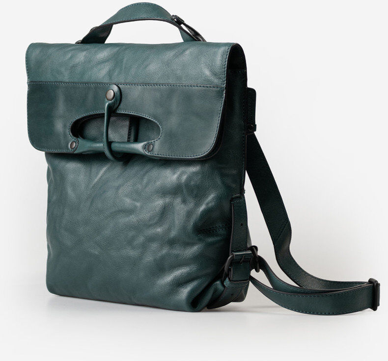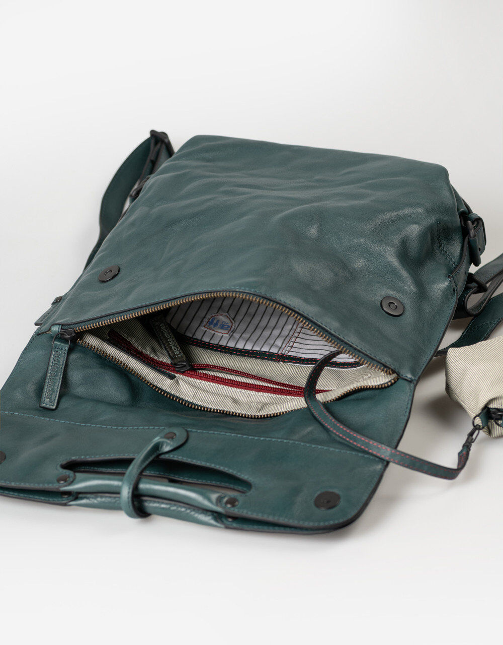 Das zu einem hohen Anteil vegetabil gegerbte Premium-Rindleder erhält durch eine besonders schonende Trocknung seinen typischen, knitterigen Look. Die händische Nachbearbeitung erzeugt matte und glänzende Kontraste.