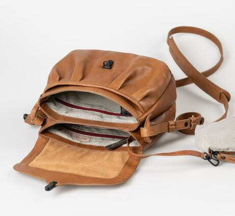 Mrs. Coconut Cake ist die kleinere Variante von Mrs. Pineapple Pie. Die Umhängetasche aus sorgsam gegerbtem Premium-Leder ist perfekt für den Alltag, denn das bauchige Design sorgt für reichlich Platz auf kompaktem Raum. Das schmale Steckschloss, die weiche Raffung und die abgerundete Form verleihen der Flap Bag eine feminine Ästhetik, die mit vielerlei Looks harmoniert. Unter dem Überschlag der Tasche finden sich ein zweigeteiltes Hauptfach sowie ein aufgesetztes vorderes Fach. Verschiedene weitere Einsteckmöglichkeiten, ein Schlüsselband und ein herausnehmbares Extra-Täschchen sorgen für Ordnung und Übersicht. Das rückseitige Reißverschlussfach lässt sich mit einem Druckknopf extra sicher verschließen. Damit Mrs. Coconut Cake jederzeit angenehm auf deiner Schulter liegt, ist der Umhängegurt mit einem bequemen Polster ausgestattet.