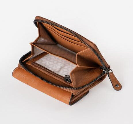 - rückseitiges, unterteiltes Münzfach mit Reißverschluss