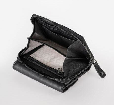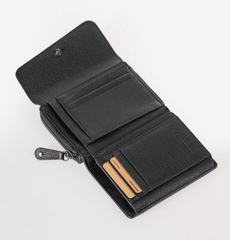 - rückseitiges, unterteiltes Münzfach mit Reißverschluss