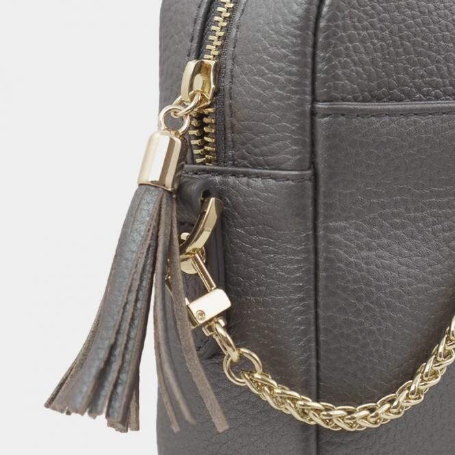 Die ALESSIAUmhängetasche aus weichem, genarbtem Leder mit Metalliceffekt in klassischen Basisfarben und trendigen Pastelltönen ist das perfekte Accessoire für trendbewusste Frauen. Mit goldenen Akzenten, filigraner Tragekette und femininer Lederquaste verkörpert sie gekonnt ein elegantes Erscheinungsbild und ist ideal für unterwegs und besondere Events.