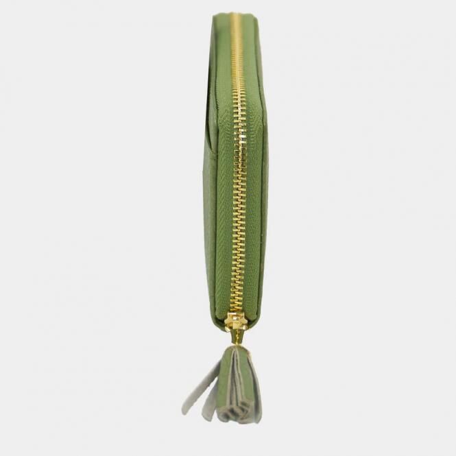 Die RV-Geldbörse ALESSIA aus hochwertig-genarbtem Leder in schimmernder Metallic-Optik ist in pastelligen Farbnuancen und klassischen Tönen erhältlich und liegt durch ihre weiche Haptik angenehm in der Hand. Gold-glänzende Metallteile und der Reißverschluss-Anfasser mit femininer Quaste verleihen der Geldbörse einen edlen Look.