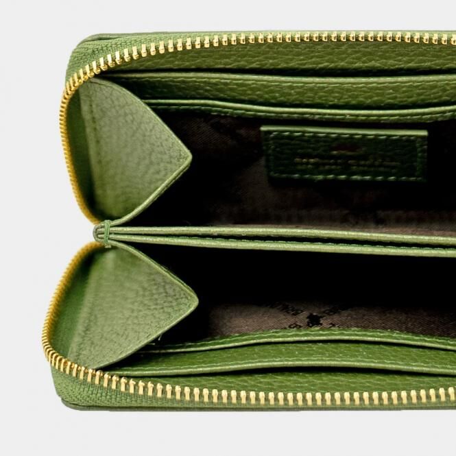 Der neue Style in der ALESSIA Reihe ist für kompakte Börsen-Liebhaber. Die kleine Zip-Around Börse offenbart Platz für vier Karten und hat ein mittiges Steckfach. Auch Geldscheine können gefaltet in der Mitte problemlos aufbewahrt werden. Die platzsparende Börse wird durch einen stylischen Reißverschluss vollständig verschlossen. Der stylische Leder-Puller rundet das puristische Design der Börse ab.