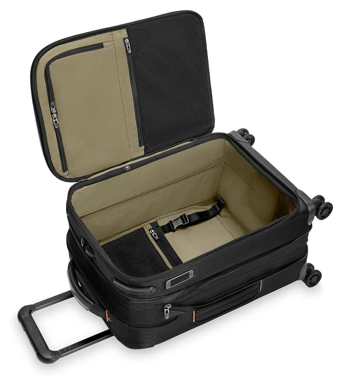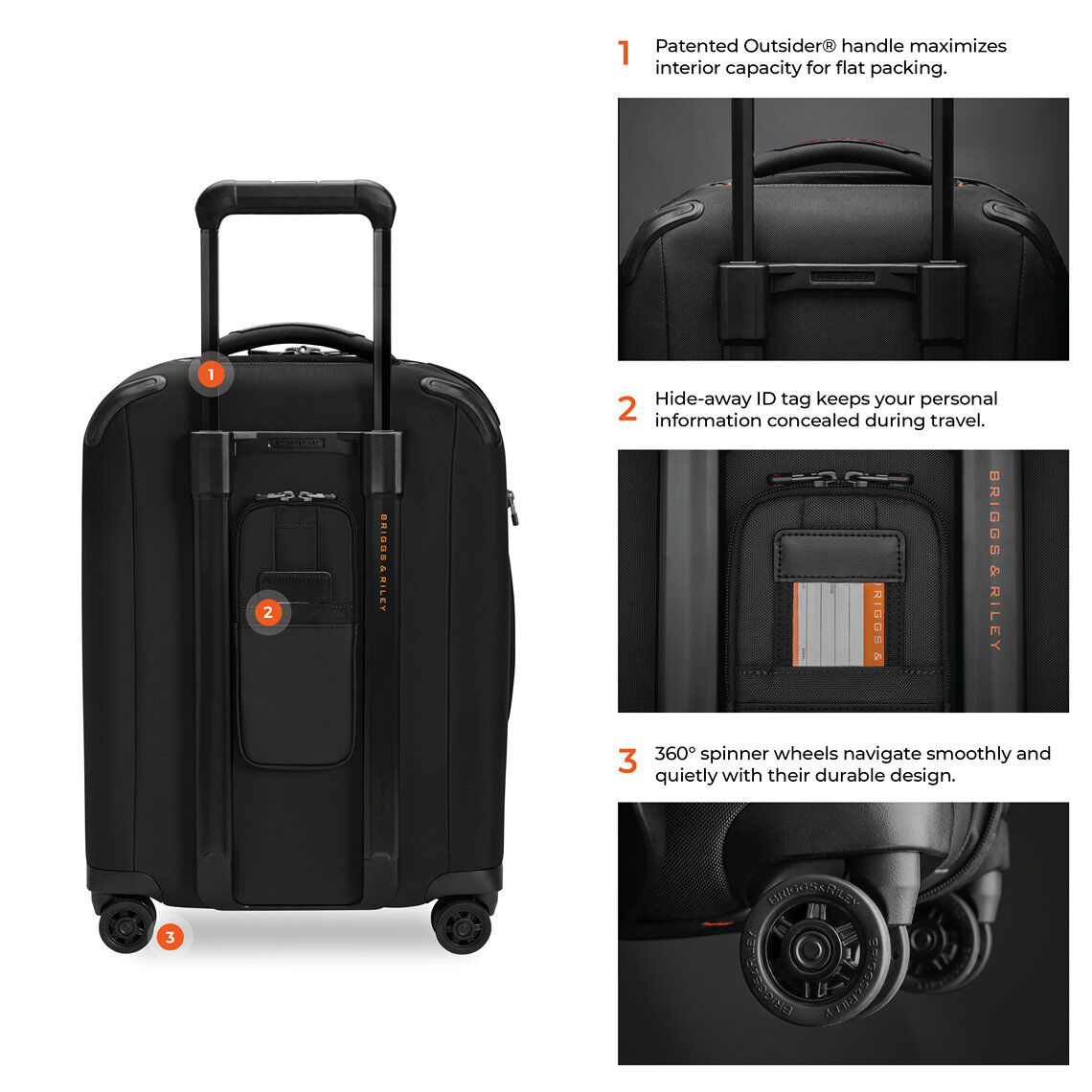 - Der patentierte und ikonische Outsider®-Griff maximiert den Innenraum und sorgt für eine flache Packfläche zur Minimierung von Knitterfalten.