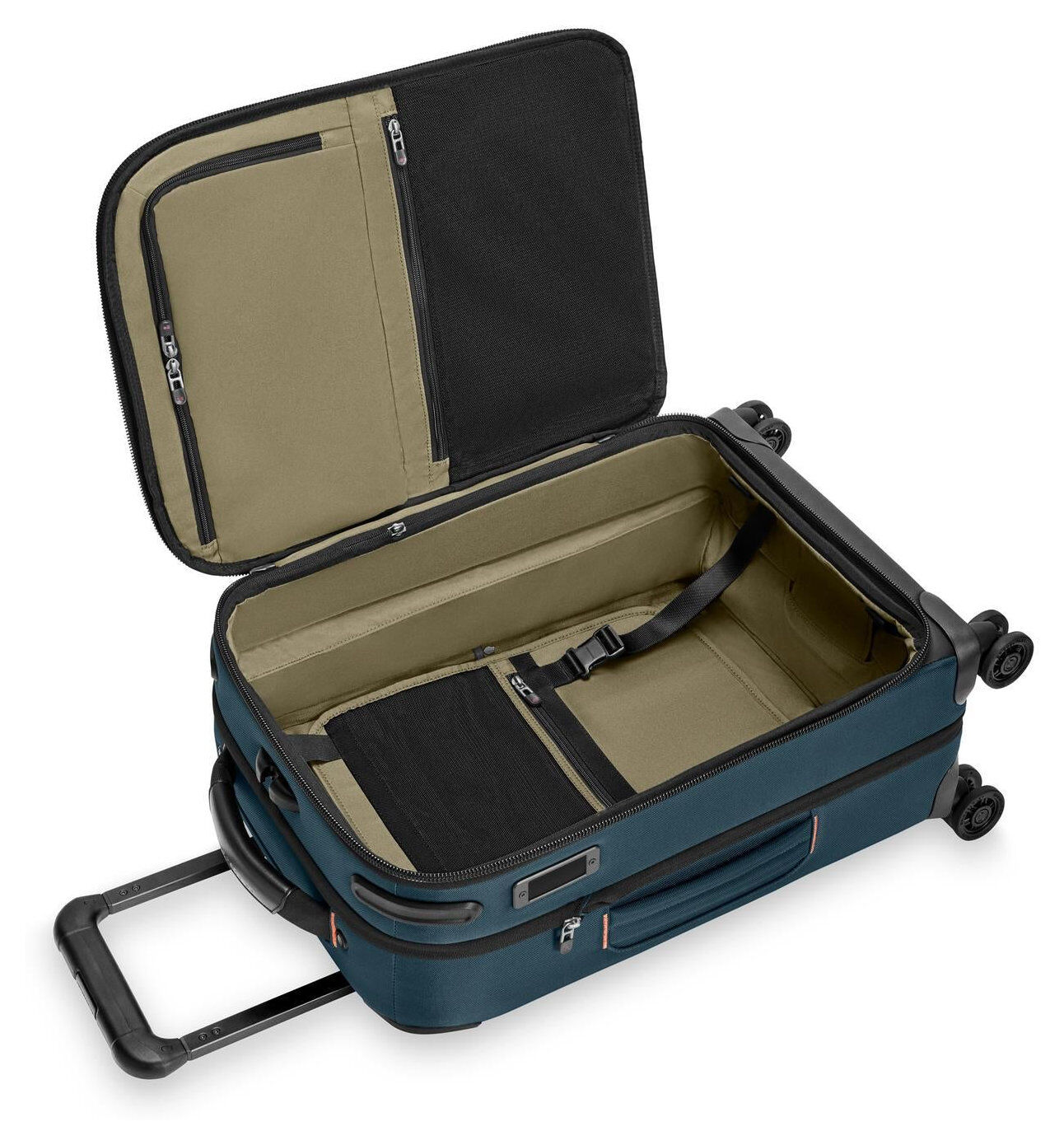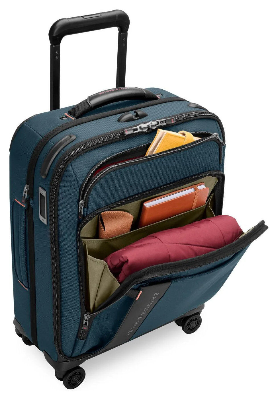- Der patentierte und ikonische Outsider®-Griff maximiert den Innenraum und sorgt für eine flache Packfläche zur Minimierung von Knitterfalten.