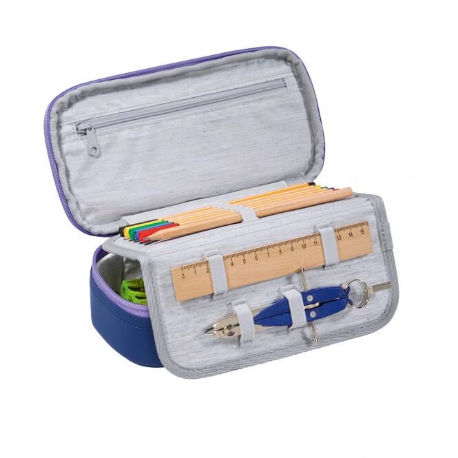 Alles andere als „schlampig“: Im Schulmäppchen geht so schnell nichts mehr verloren – Stifteorganizer und extra Fächer für Stundenplan, Geodreieck und Zirkel halten alles aufgeräumt an seinem Platz. In den Stiftschlaufen im Inneneinteiler sind die wichtigsten Stifte von Füller bis Bleistift sofort griffbereit. Im Stundenplanfach hat dein Kind direkten Überblick, was als nächstes kommt. Das große Hauptfach bietet genügend Platz für Spitzer, Schere, Klebestift und Lineale, kleinere Utensilien wie Tintenpatronen oder Kleingeld sind im Reißverschlussfach sicher aufgehoben. So ist dein Kind perfekt ausgestattet - ob für Schulaufsätze oder den Kunstunterricht.