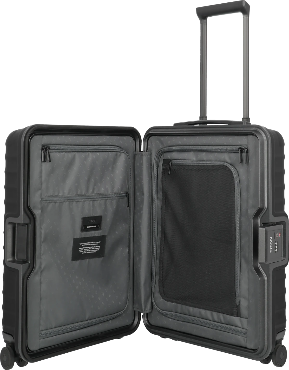Stabilität und Sicherheit neu gedacht. Die OVERSEAS-Koffer von TITAN heben Sicherheit auf Reisen auf ein neues Level. Die eigens von TITAN entwickelte Rahmenkonstruktion garantiert außerordentliche Stabilität, während extragroße TSA-Schlösser maximalen Schutz und mühelose Handhabung ermöglichen. Die innovative, kratzresistente Oberfläche der zeitlos eleganten Trolleys – Made in Germany – trotzt härtesten Anforderungen. Innen sorgt eine durchdachte Aufteilung mit mehreren Fächern für optimale Organisation. Ergonomische Handgriffe und leichtgängige Doppelrollen maximieren den Komfort. TITAN OVERSEAS: Qualität und Design – Made in Germany für Reisen auf höchstem Niveau.