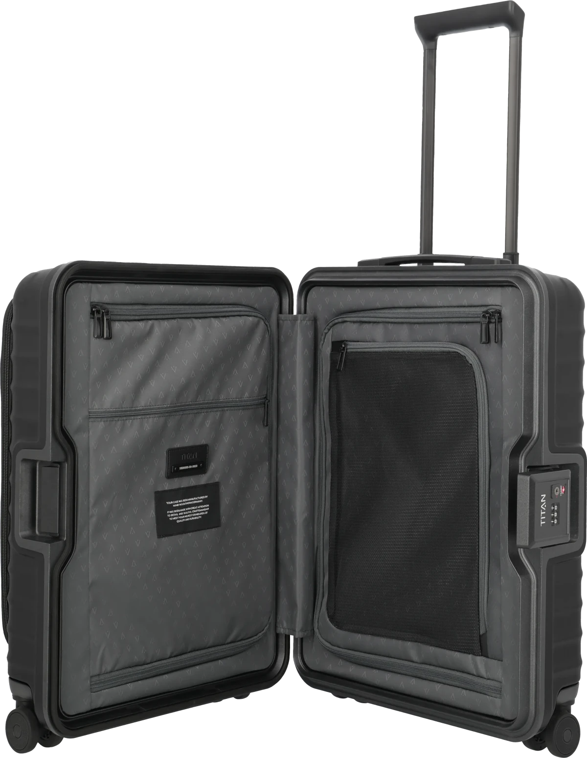 Stabilität und Sicherheit neu gedacht. Die OVERSEAS-Koffer von TITAN heben Sicherheit auf Reisen auf ein neues Level. Die eigens von TITAN entwickelte Rahmenkonstruktion garantiert außerordentliche Stabilität, während extragroße TSA-Schlösser maximalen Schutz und mühelose Handhabung ermöglichen. Die innovative, kratzresistente Oberfläche der zeitlos eleganten Trolleys – Made in Germany – trotzt härtesten Anforderungen. Innen sorgt eine durchdachte Aufteilung mit mehreren Fächern für optimale Organisation. Ergonomische Handgriffe und leichtgängige Doppelrollen maximieren den Komfort. TITAN OVERSEAS: Qualität und Design – Made in Germany für Reisen auf höchstem Niveau.