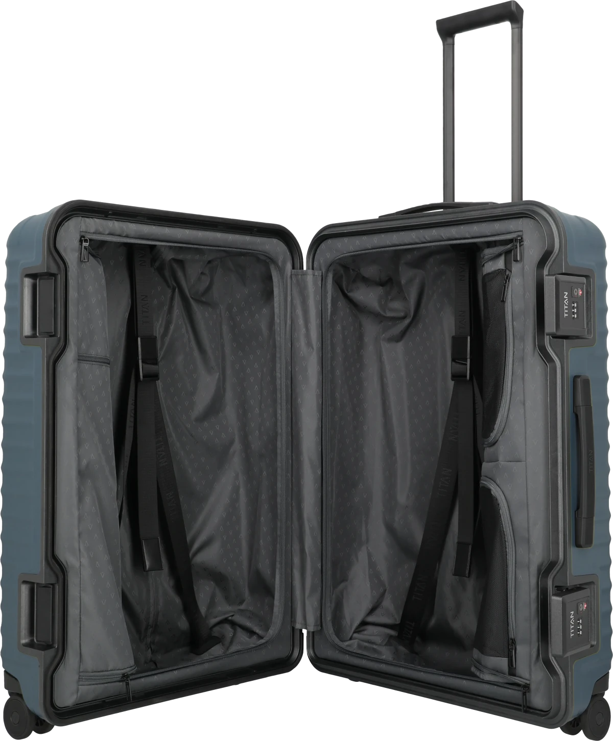 Stabilität und Sicherheit neu gedacht. Die OVERSEAS-Koffer von TITAN heben Sicherheit auf Reisen auf ein neues Level. Die eigens von TITAN entwickelte Rahmenkonstruktion garantiert außerordentliche Stabilität, während extragroße TSA-Schlösser maximalen Schutz und mühelose Handhabung ermöglichen. Die innovative, kratzresistente Oberfläche der zeitlos eleganten Trolleys – Made in Germany – trotzt härtesten Anforderungen. Innen sorgt eine durchdachte Aufteilung mit mehreren Fächern für optimale Organisation. Ergonomische Handgriffe und leichtgängige Doppelrollen maximieren den Komfort. TITAN OVERSEAS: Qualität und Design – Made in Germany für Reisen auf höchstem Niveau.