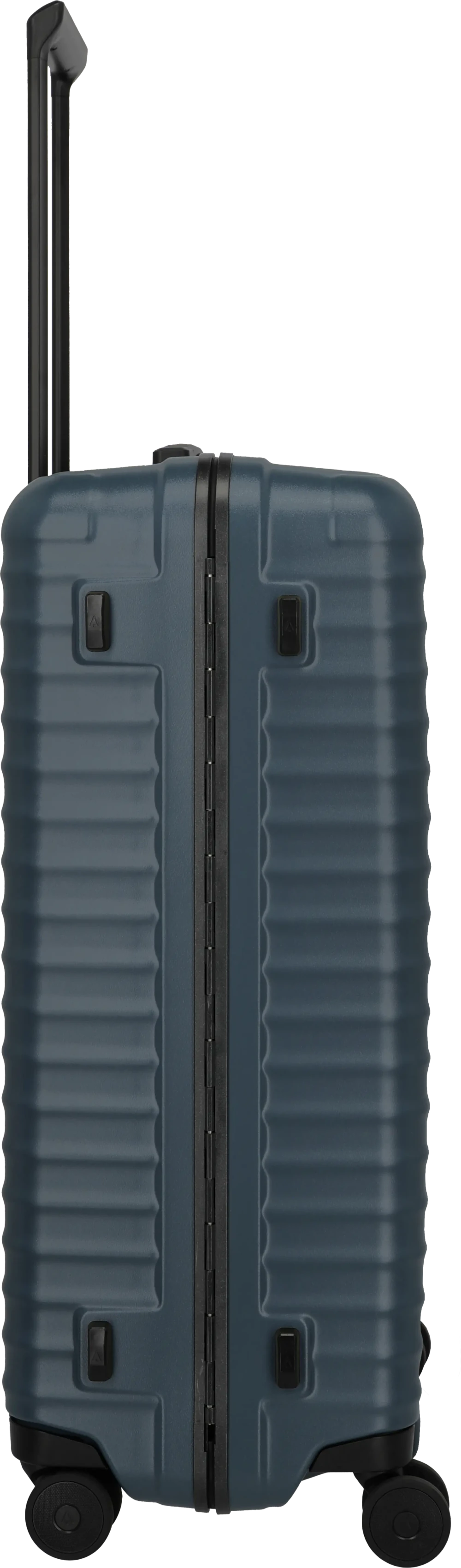 Der OVERSEAS L bietet ein großzügiges Packvolumen von 100 Litern für Langstreckenreisen. Die innovative Rahmenkonstruktion sorgt für höchste Stabilität, während zwei seitlich platzierte TSA-Schlösser eine sichere und komfortable Handhabung ermöglichen. Die robuste Polycarbonat-Schale ist äußerst kratzresistent und schützt das Gepäck zuverlässig. Innen perfekt durchdacht, bleibt alles übersichtlich organisiert. Flüsterleise Doppelrollen garantieren Wendigkeit und ein Handling ohne Kraftaufwand. Perfekt für Vielreisende mit hohem Platzbedarf.