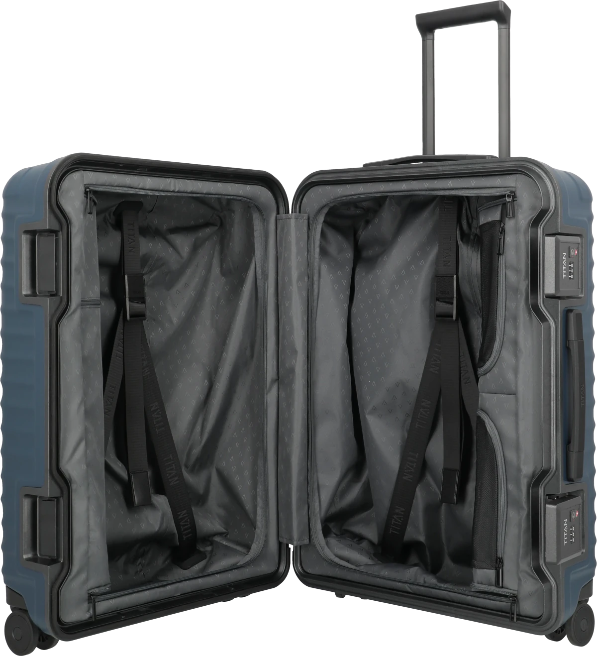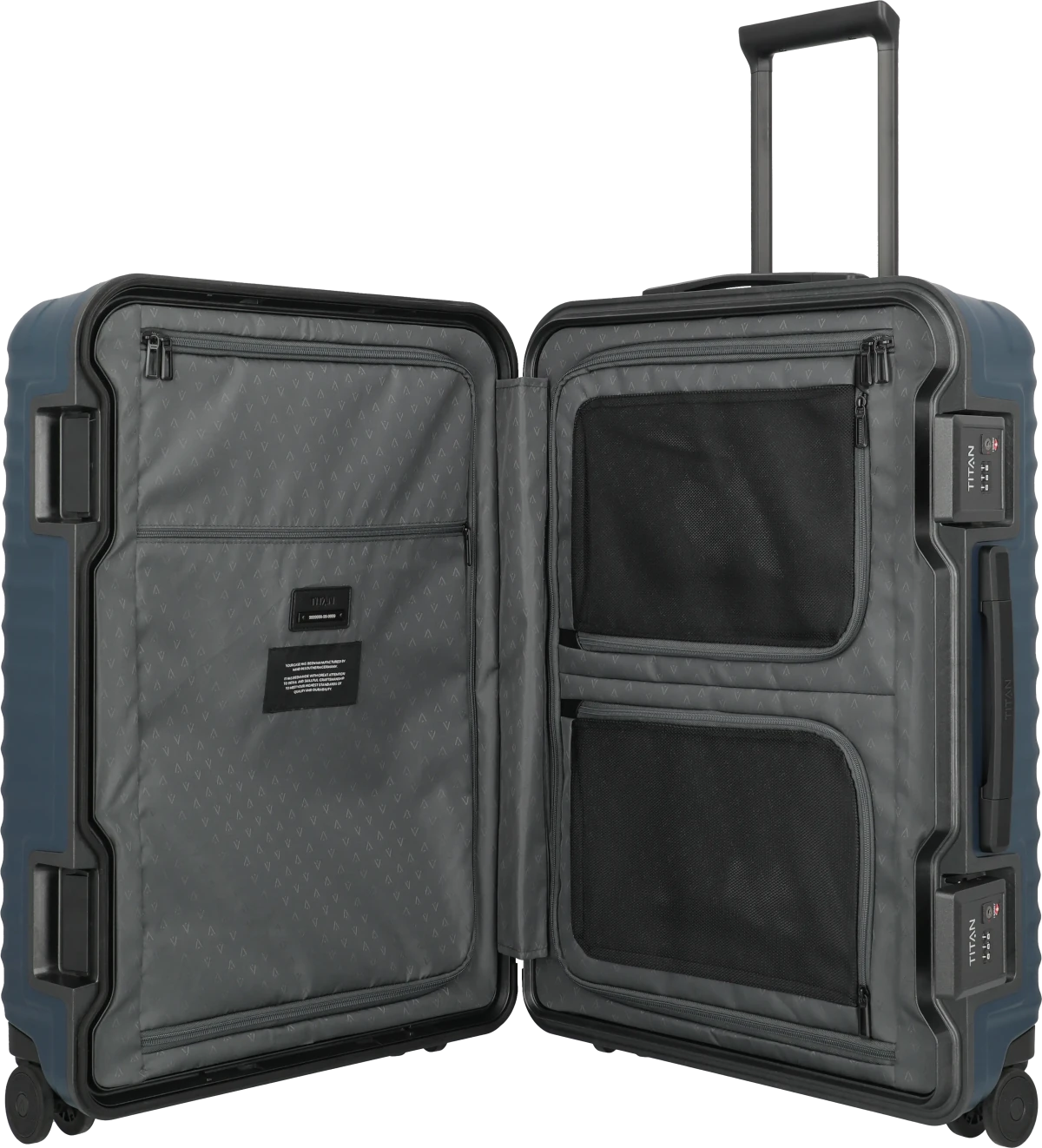 Stabilität und Sicherheit neu gedacht. Die OVERSEAS-Koffer von TITAN heben Sicherheit auf Reisen auf ein neues Level. Die eigens von TITAN entwickelte Rahmenkonstruktion garantiert außerordentliche Stabilität, während extragroße TSA-Schlösser maximalen Schutz und mühelose Handhabung ermöglichen. Die innovative, kratzresistente Oberfläche der zeitlos eleganten Trolleys – Made in Germany – trotzt härtesten Anforderungen. Innen sorgt eine durchdachte Aufteilung mit mehreren Fächern für optimale Organisation. Ergonomische Handgriffe und leichtgängige Doppelrollen maximieren den Komfort. TITAN OVERSEAS: Qualität und Design – Made in Germany für Reisen auf höchstem Niveau.