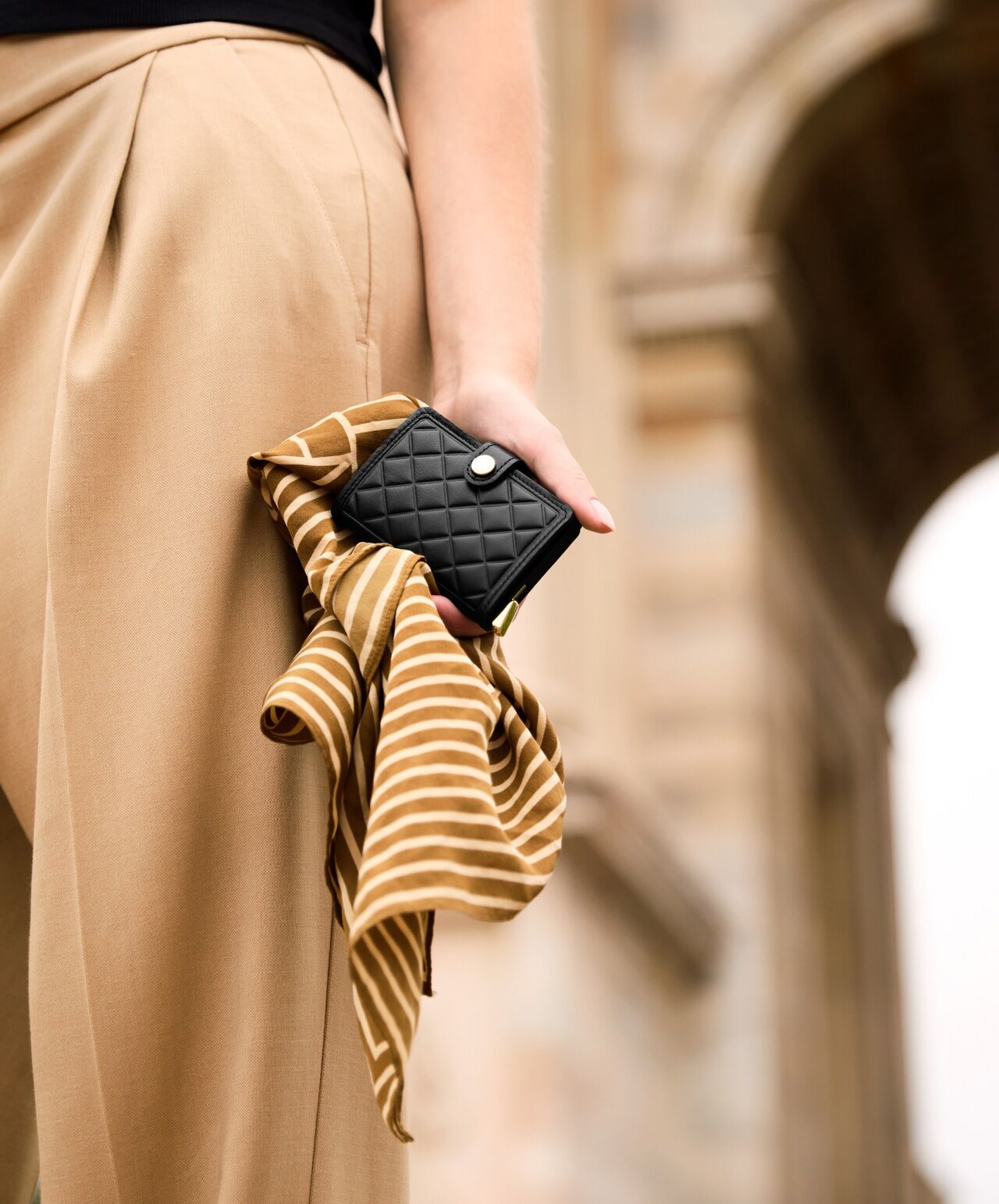 Eine besonders elegante Geldbörse mit einem maßgeschneiderten Diamantrelief und hochwertigem Schafsleder. Der flache, goldfarbene Verschlussknopf unterstreicht das schlanke Profil dieser Geldbörse. Ein Stück Luxus für jeden Tag.