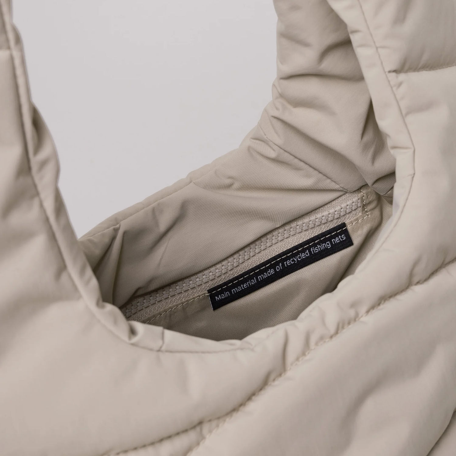 - RE:NYNET® Hauptmaterial aus recyceltem Nylon aus Fischernetzen, Innenmaterial aus recyceltem Nylon, Reißverschlüsse aus PA, Polsterung aus recyceltem Polyester