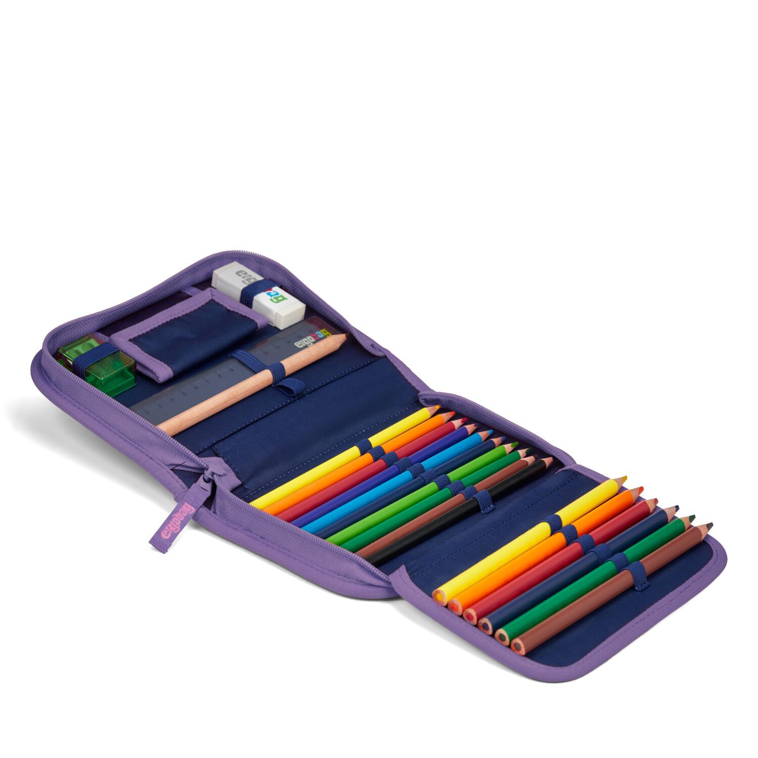 5. Federmäppchen: Bestens ausgestattet (22-tlg.), finden neben 17 Stiften in Reih und Glied auch Radiergummi, Lineal, Spitzer und Stundenplan ihren Platz.