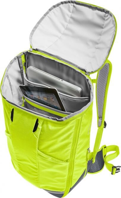 Der Großstadtdschungel fordert Gleichgewicht und ist schweißtreibend zugleich. Da muss der Lastenschwerpunkt des Rucksacks körpernah und die Luftzirkulation maximal sein. Dafür sorgen das komfortable Airstripes Tragesystem mit reduzierter Rückenauflage, das luftdurchlässige Air Spacer Mesh, die ergonomisch geformten, perforierten Schulterträger und Hüftflossen und der verstellbare Brustgurt. Im Inneren lässt sich dank Volumenerweiterung neben Arbeitsunterlagen auch der Einkauf verstauen. Helmhalterung, abnehmbare Regenhülle und reflektierende Elemente sorgen für die Sicherheit.