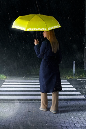 Fluoreszierender, kompakter Taschenschirm mit Reflektoren, ideal auch für Kinder. Dunkel, neblig und regnerisch - genau and diesen Tagen sorgt Safety für die nötige Sichtbarkeit bei jeder Tageszeit. Sicherheit für die ganze Familie: die Safety Regenschirmserie bietet mit reflektierenden Elementen und Tagesleuchtfarben eine besonders gute Sichtbarkeit. Mit knalligen Neon-Farben in angesagten Farbnuancen ist ein Auffallen garantiert.
