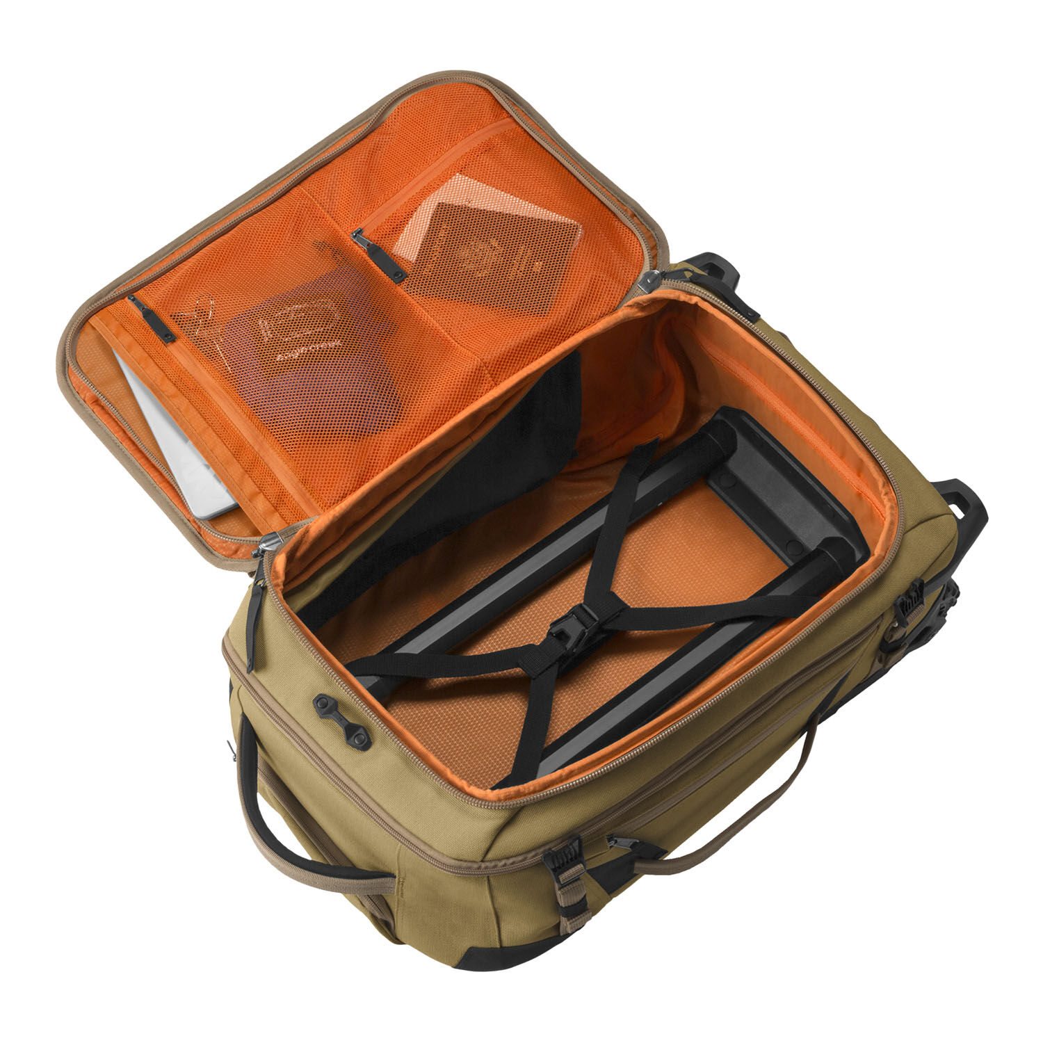- Stossfestes Griffsystem. Standfüße halten die gepackte Tasche stabil.