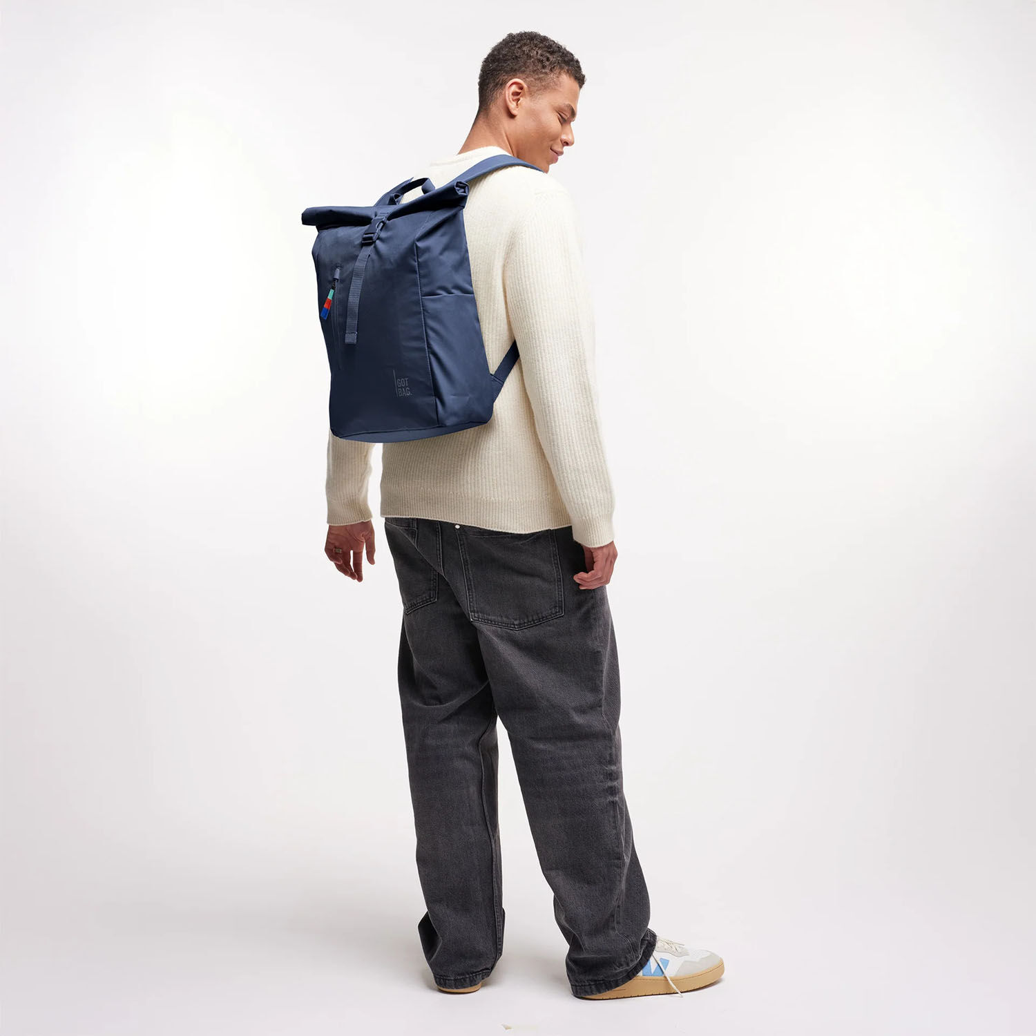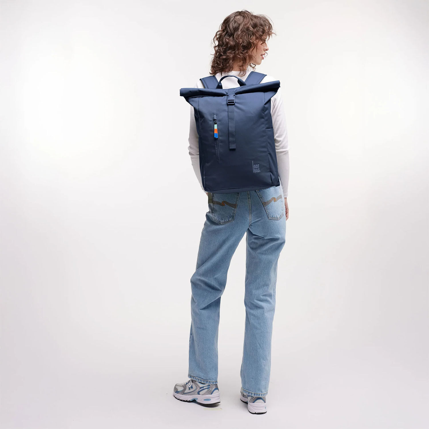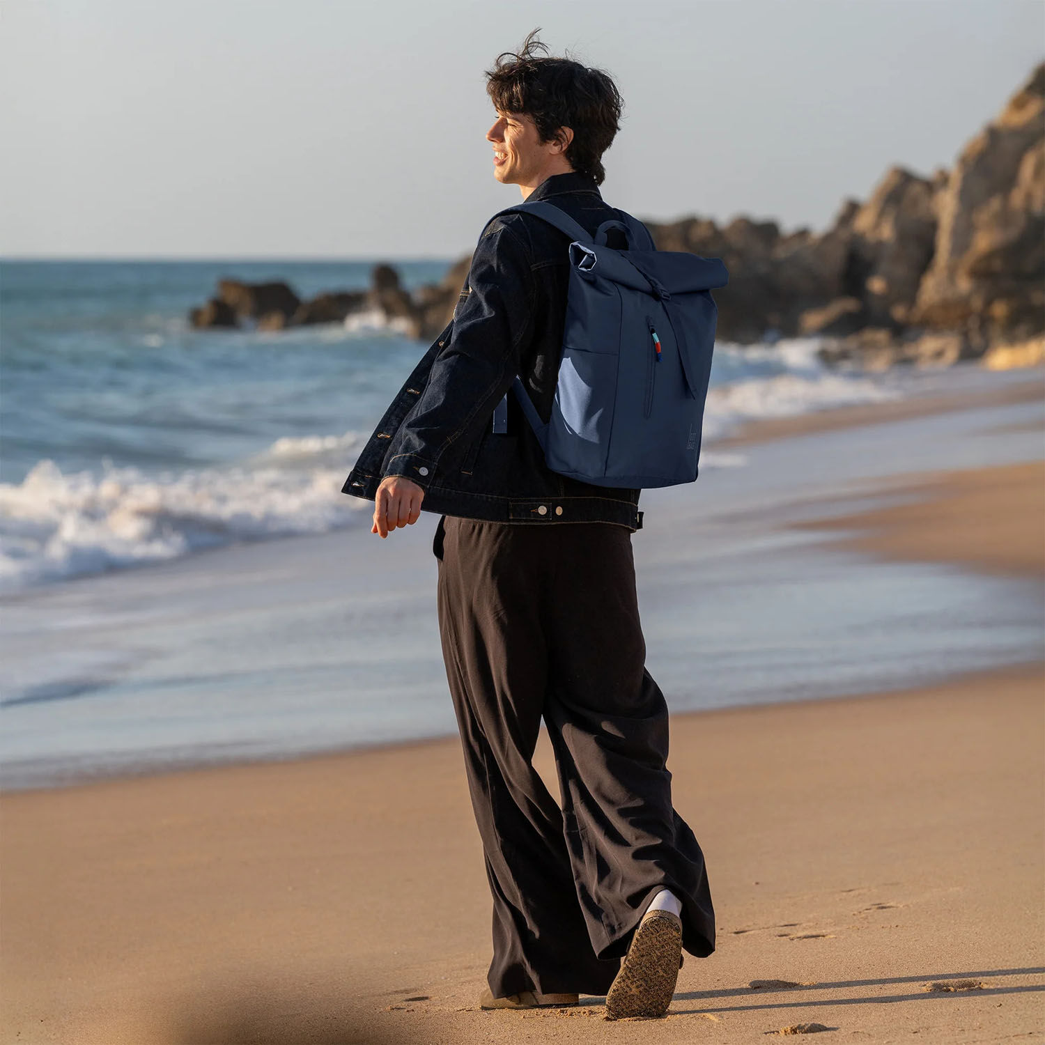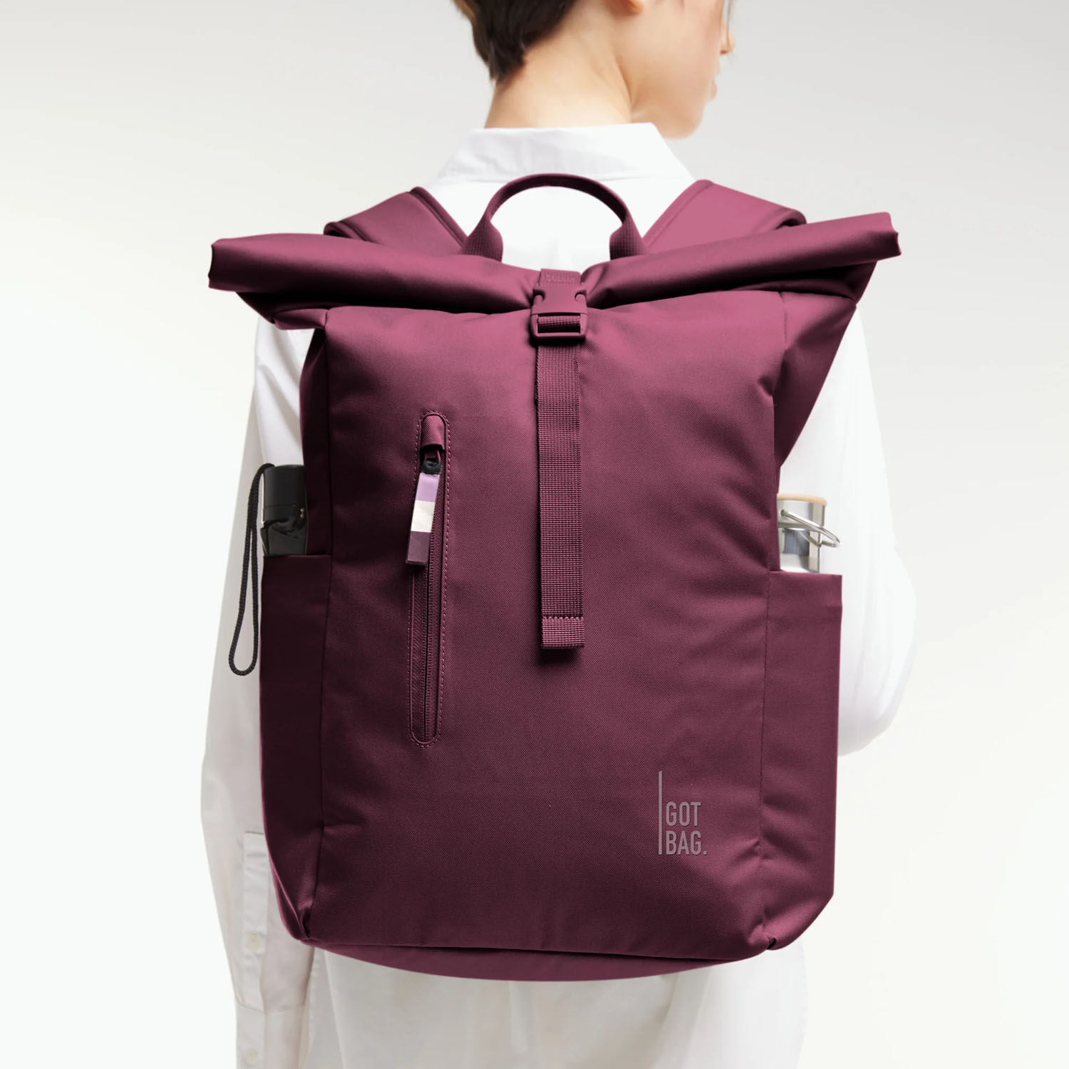 Unbeschwert unterwegs: Die leichte Version des Klassiker aus weichem, wasserabweisendem Material mit Reißverschluss-Rolltop und seitlichen Flaschenfächern.
