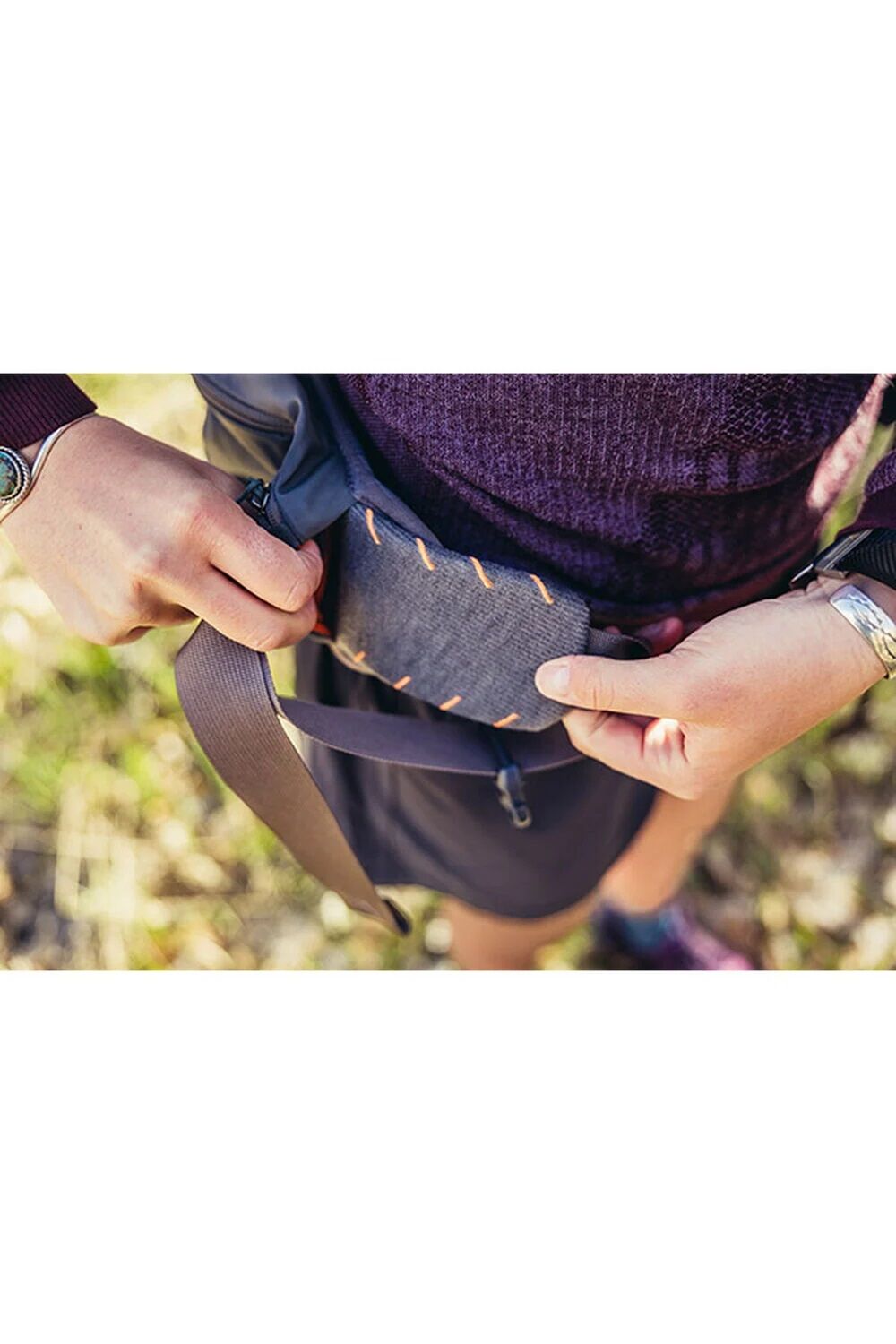 In der Stecktasche am Schultergurt ist Platz für ein Garmin inReach , deinen Lieblingssnack oder deine Sonnenbrille.