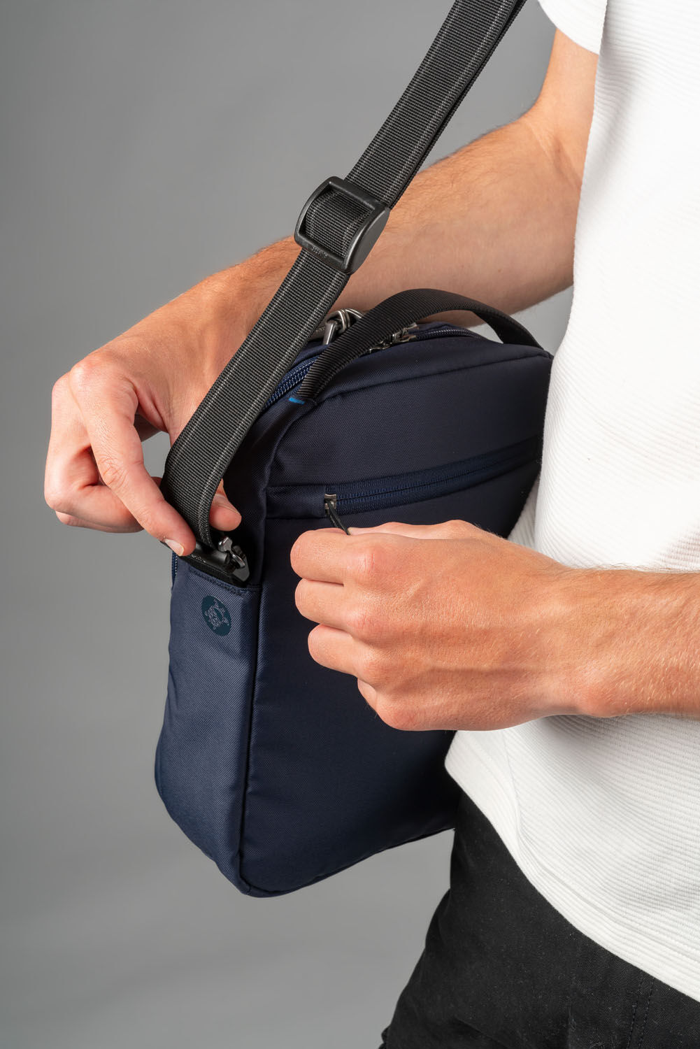 Trage all deine Essentials und mehr mit dieser Anit-Diebstahl Umhängetasche, die reichlich Stauraum bietet. Sie ist der perfekte Begleiter für weltweite Reisen oder den Alltag. Die zwei abschließbaren Fächer sind mit integrierten Organisationsfächern ausgestattet, während eine spezielle gepolsterte Hülle für ein 11" Tablet dafür sorgt, dass dein Gerät sicher verstaut bleibt. Zusätzlich gibt es ein diskretes, verstecktes Fach auf der Rückseite, das eine zusätzliche Sicherheitsebene für deine Wertsachen bietet. In der praktischen, erweiterbaren Seitentasche kannst du eine wiederverwendbare Trinkflasche oder einen kleinen Regenschirm griffbereit aufbewahren.
