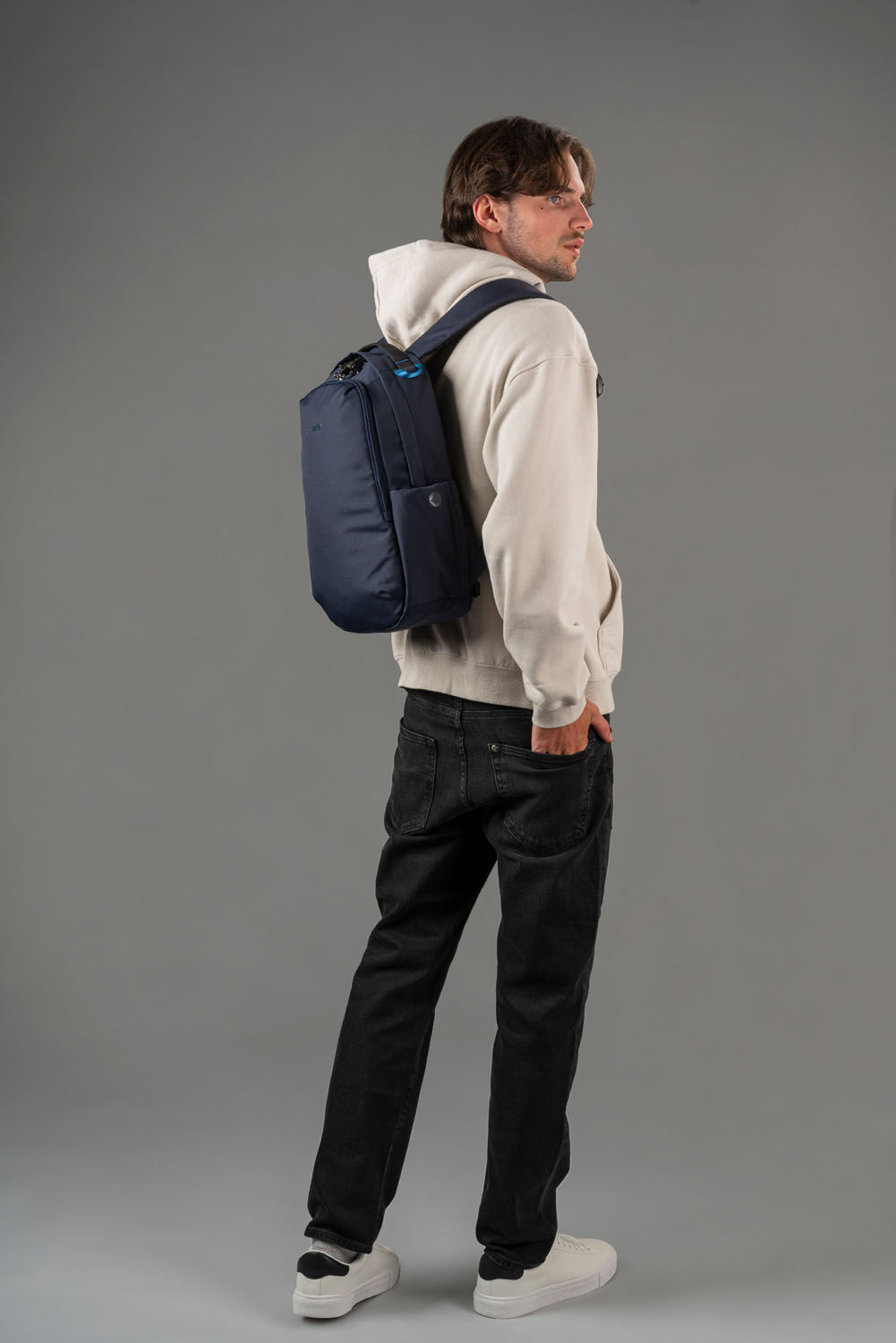 Kompakt und dennoch hochorganisiert, ist dieser 16-Liter-Diebstahlschutz-Rucksack so konzipiert, dass er Ihre Tagesausflugsutensilien sicher trägt. Er verfügt über zwei abschließbare Fächer, die jeweils mit internen Organisationsfächern ausgestattet sind, um alles ordentlich zu halten. Zusätzlich enthält der Rucksack eine gepolsterte Laptop-Tasche, die für ein 13-Zoll-MacBook ausgelegt ist und zusätzlichen Schutz für Ihr Gerät bietet. Für zusätzlichen Komfort verfügt der Rucksack über eine versteckte Tasche auf der Rückseite, in der wichtige Gegenstände wie Ihr Telefon sicher aufbewahrt werden können und die einen einfachen Zugriff ermöglicht. Außerdem hat er eine Gepäckschlaufe, mit der Sie den Rucksack sicher an den Griff Ihres Rollgepäcks befestigen können.