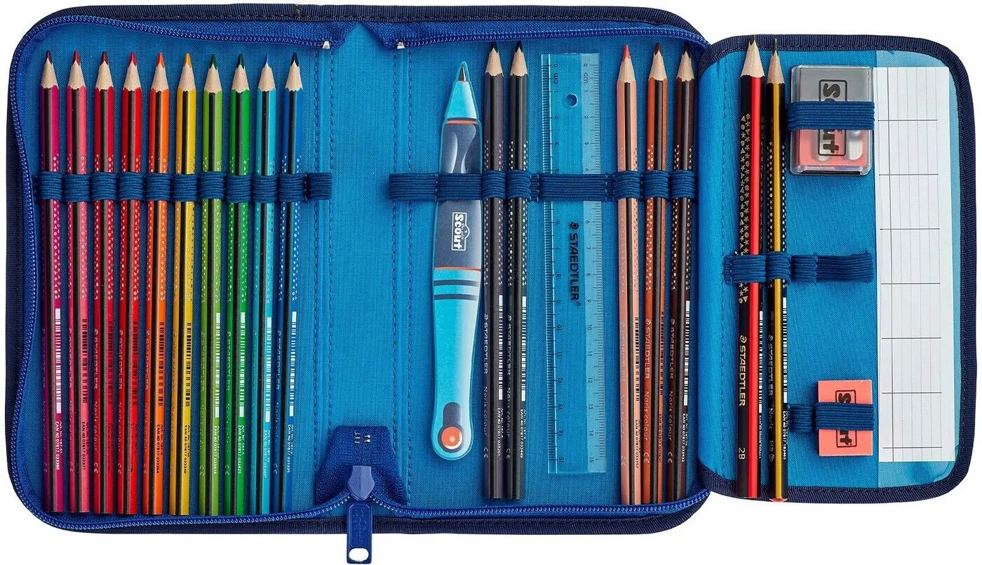 Seit über 180 Jahren macht STAEDTLER aus einem Schreibgerät einen Lieblingsstift und hat damit einen festen Platz in unseren Federmäppchen. Zudem findet ihr neben Lineal, Spitzer und Radiergummi zwei extragroße Schlaufen für Schreiblernstifte und einen dicken Bleistift. Die STAEDLER Stifte sind Made from Upcycled Wood aus Holzspänen aus der holzverarbeitenden Industrie gefertigt. So kann die Umwelt geschont und der Rohstoff Holz noch effizienter eingesetzt werden. Mit dem Stundenplan, der im integrierten Klarsichtfach zu finden ist, könnt ihr dann direkt in den Schulalltag starten!