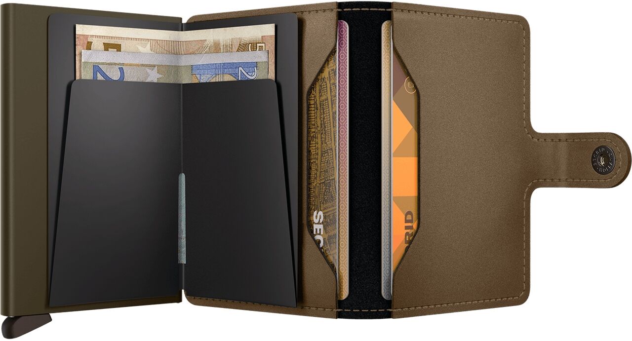 Die Miniwallet ist klein und doch überraschend groß, es kombiniert das Beste aus beiden Welten. Während sich auf der einen Seite Banknoten, Quittungen und Karten, leicht verstauen lassen, können Sie auf der anderen Seite mit dem Aluminium Cardprotector Ihre Karten mit einer einfachen Bewegung herausschieben. Außerdem sind Ihre Karten vor Biegen, Brechen und vor unerwünschter drahtloser Kommunikation geschützt.