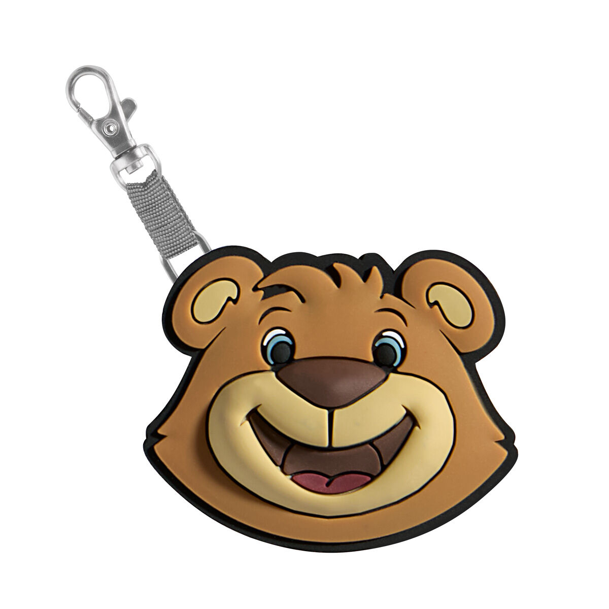 - Der Karabiner-Anhänger wird an der Sicherungsöse am Rucksack befestigt.
