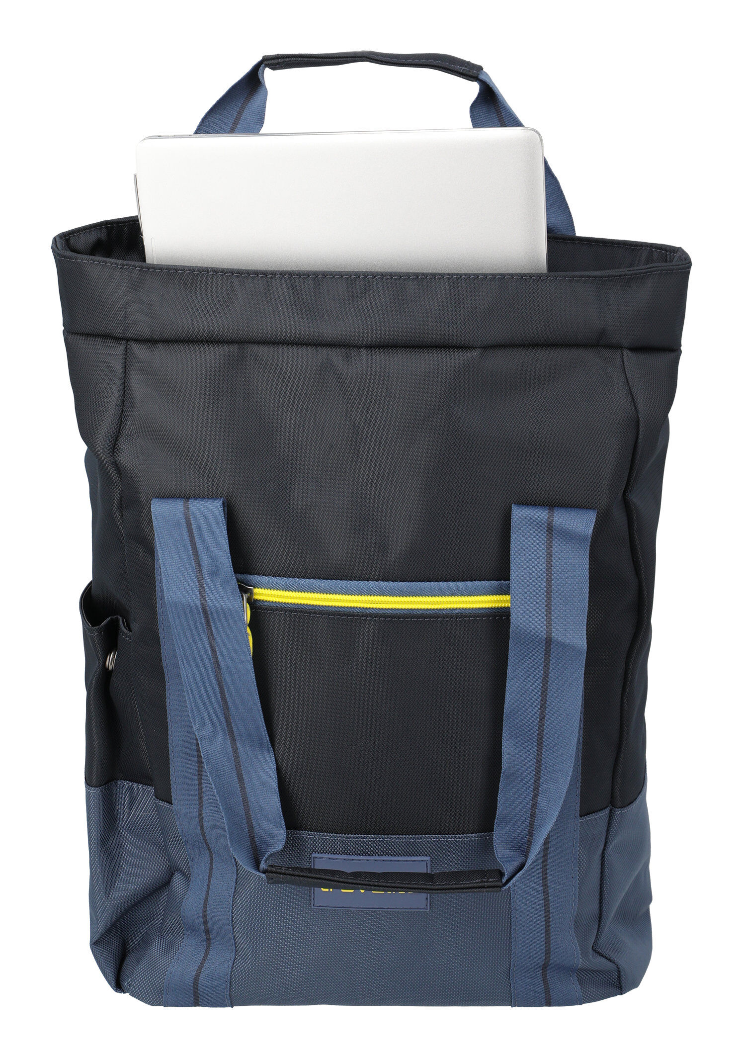 Die Tote Bag besitzt ein vorderes Fach speziell für die Wertsachen und ein leicht gepolstertes Fach für einen Laptop. Zusätzlich gibt es ein seitliches Fach.
